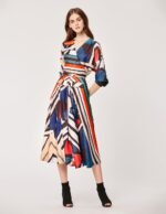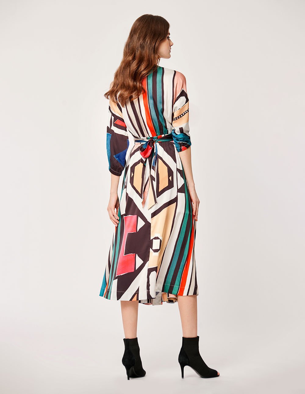 MARYLING Silk Ndebele Style Pattern V Neck A-Line Midi Dress