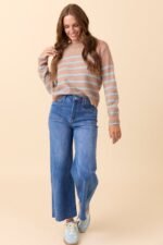 Serenity Striped Brown and Blue Pullover Sweater